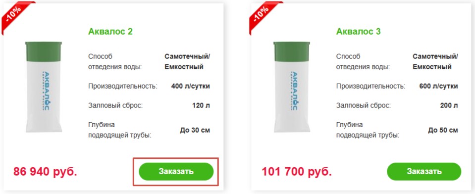 - Скидки на септики Аквалос 10%