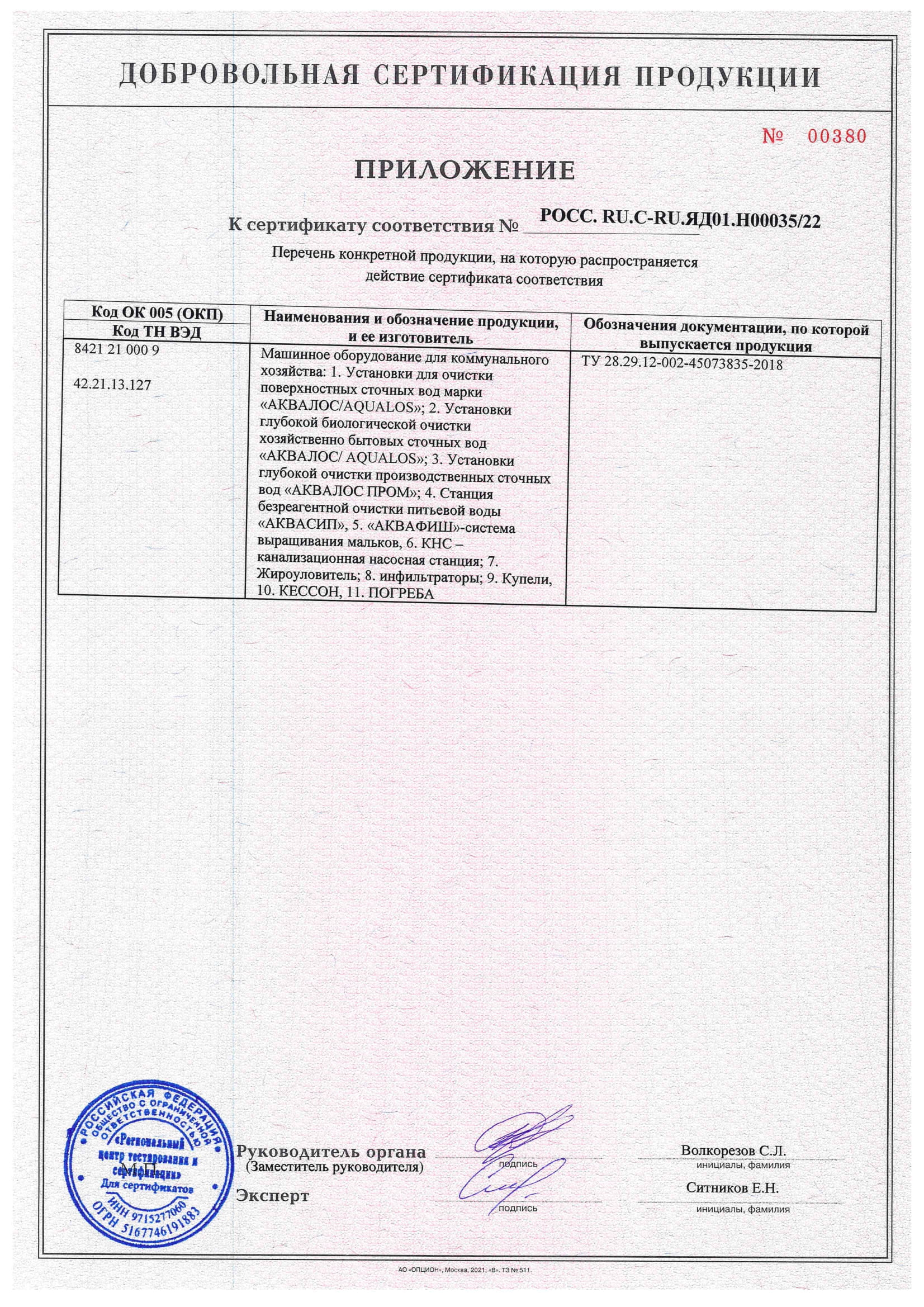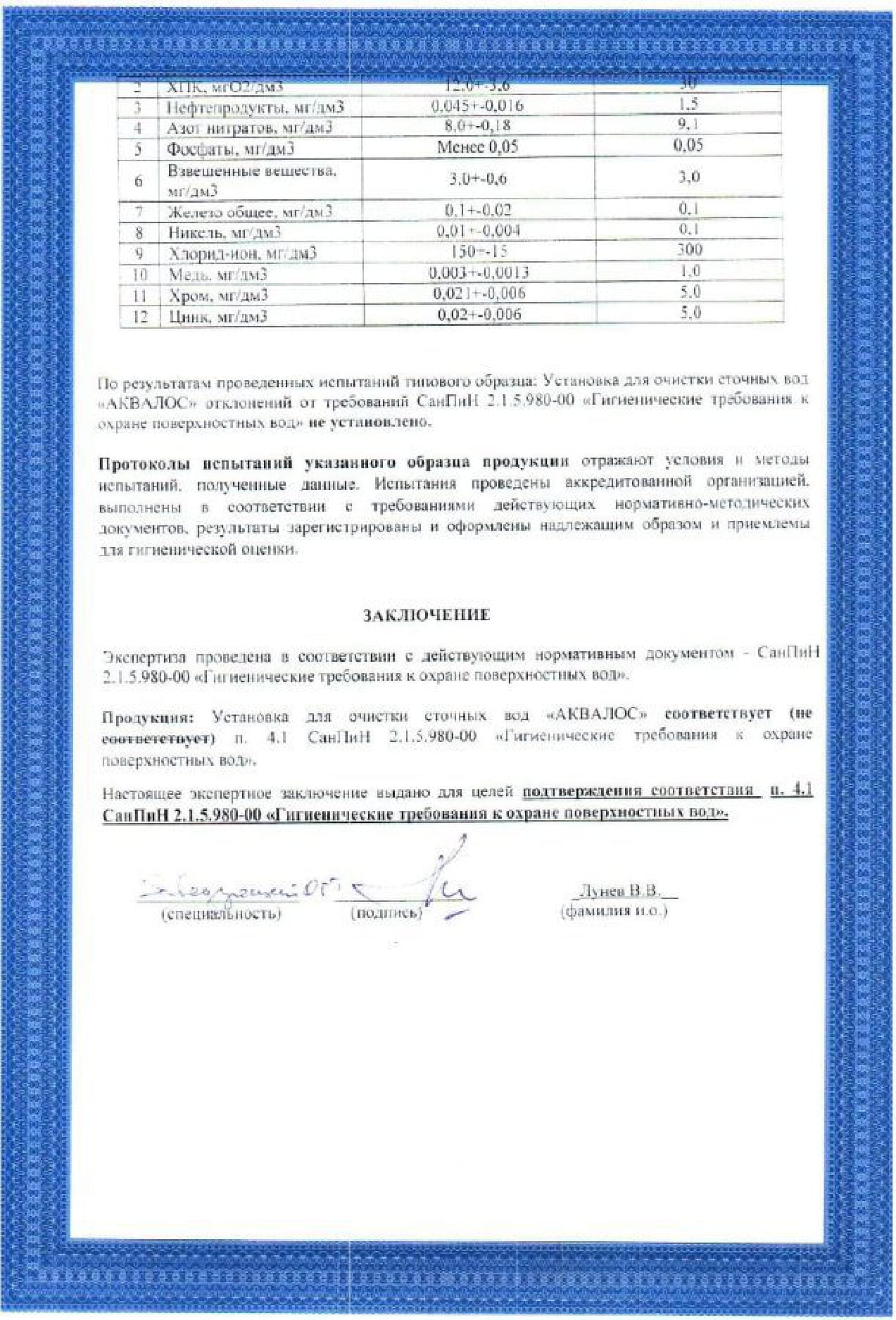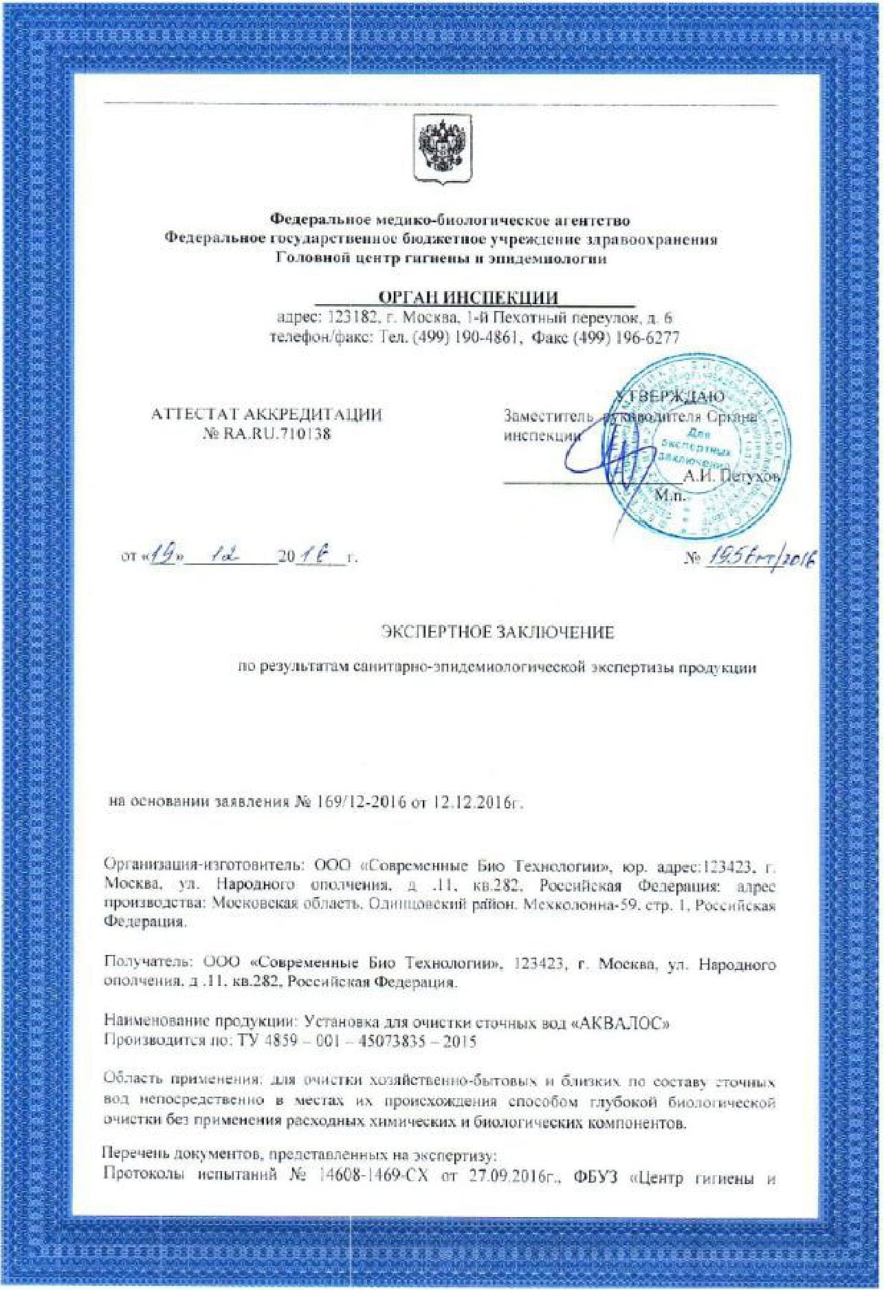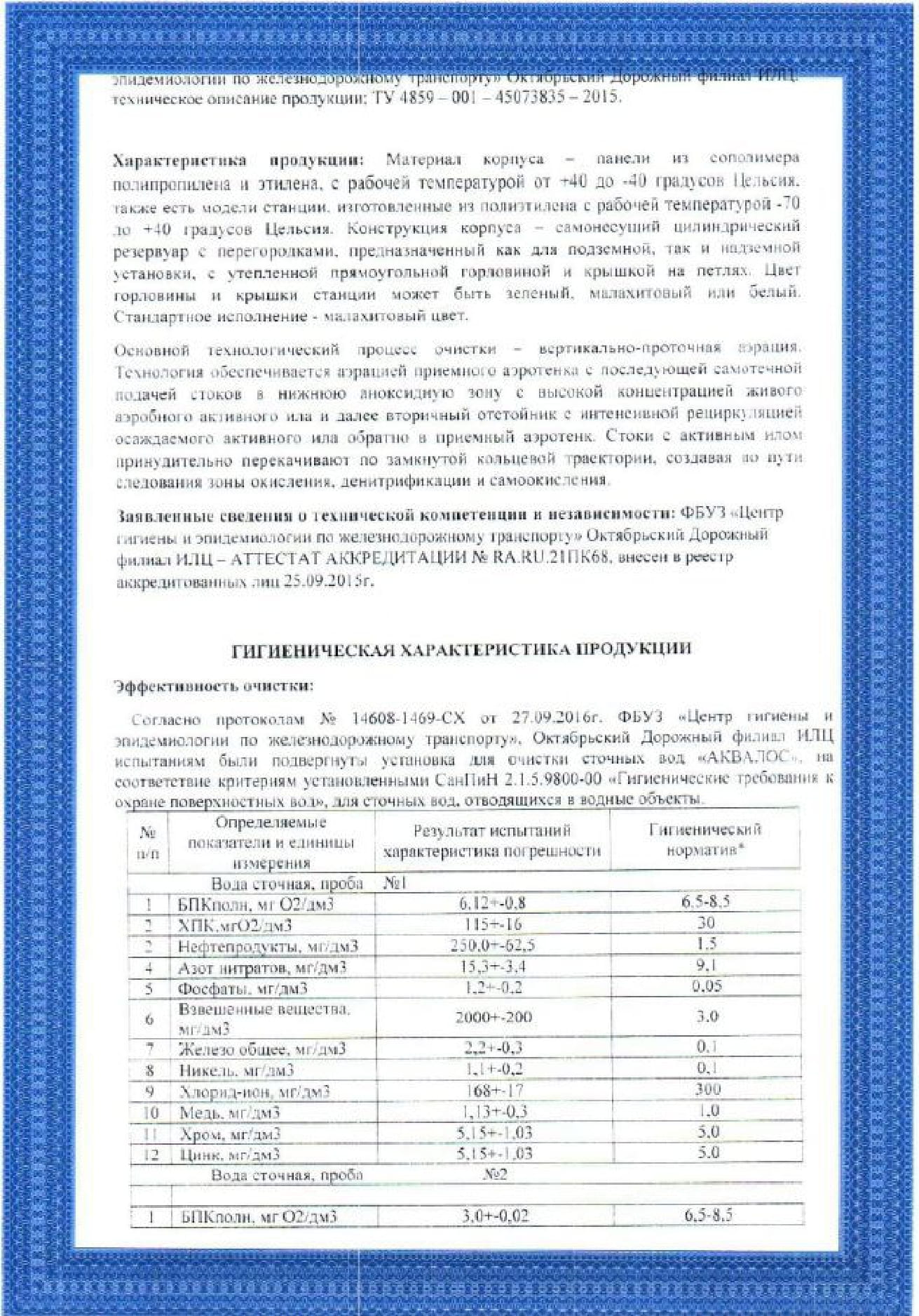 Сертификаты Аквалос