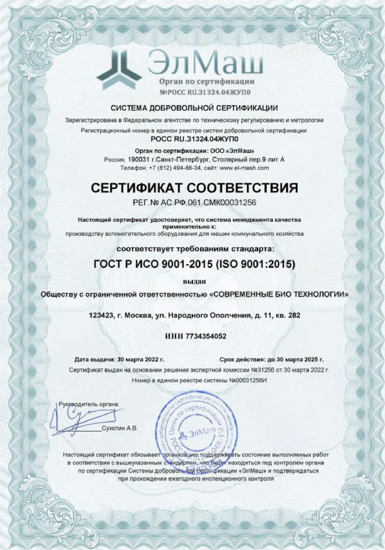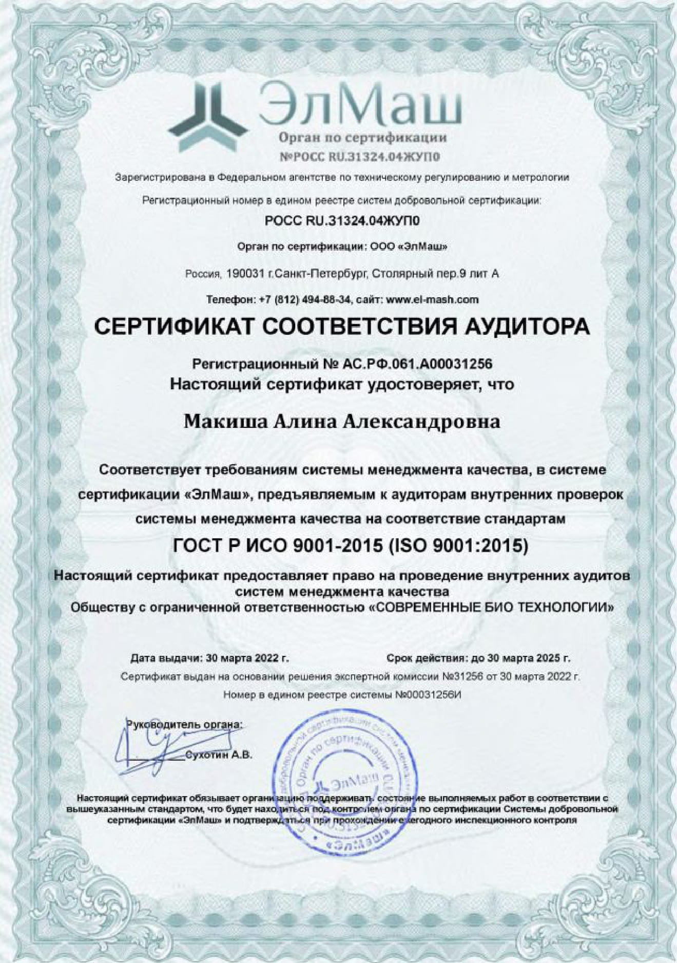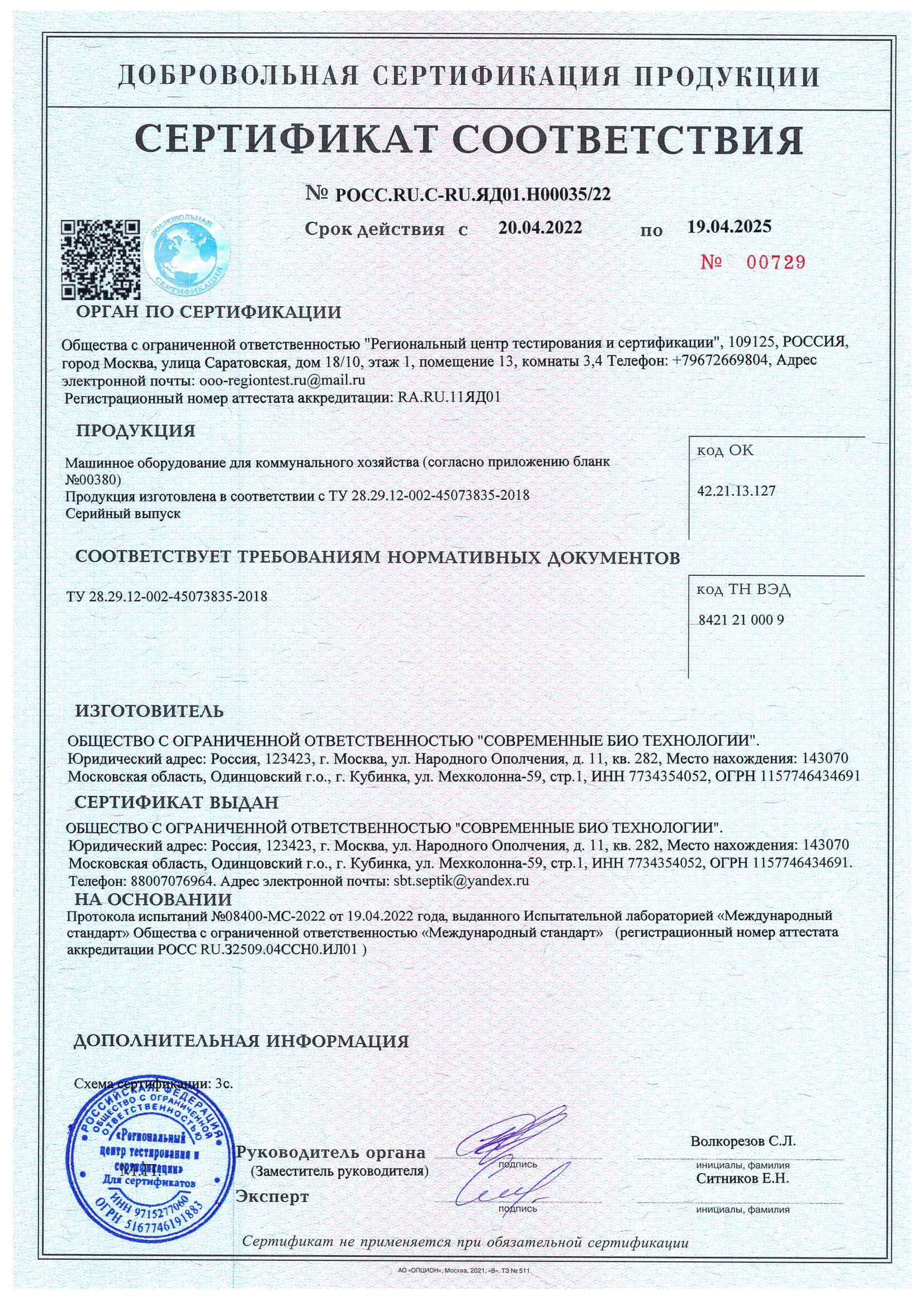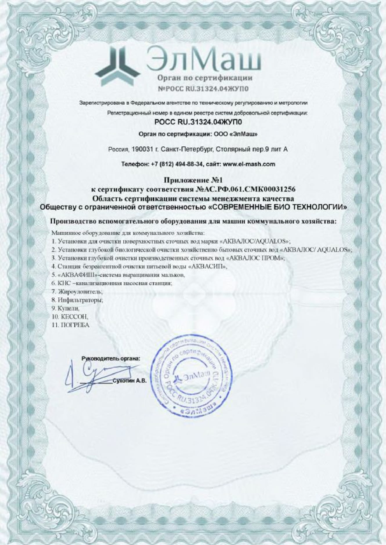 Сертификаты Аквалос